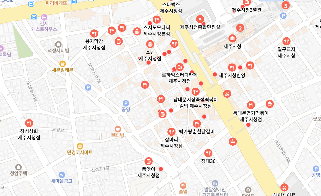 ※ 제주시청 외에도 노형·연동 일대는