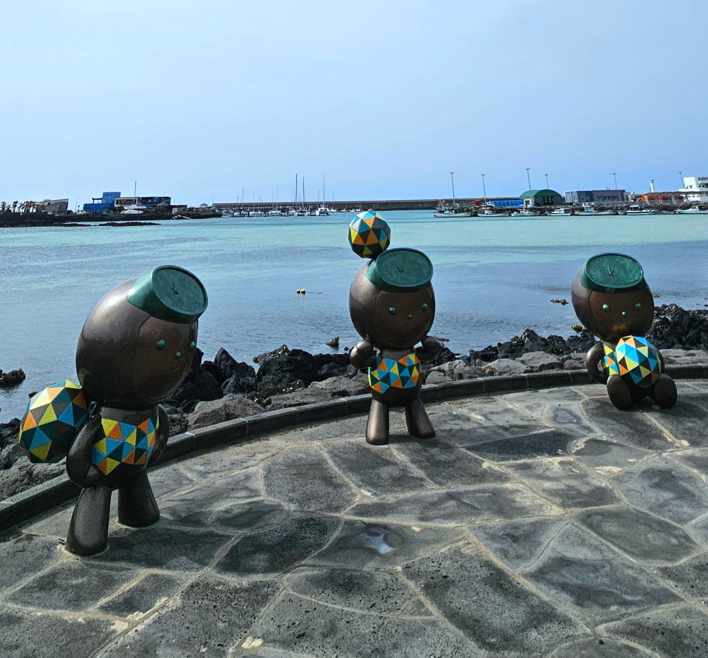 제주 올레길 19코스 김녕 포구 해녀 조형물과 바다 풍경
