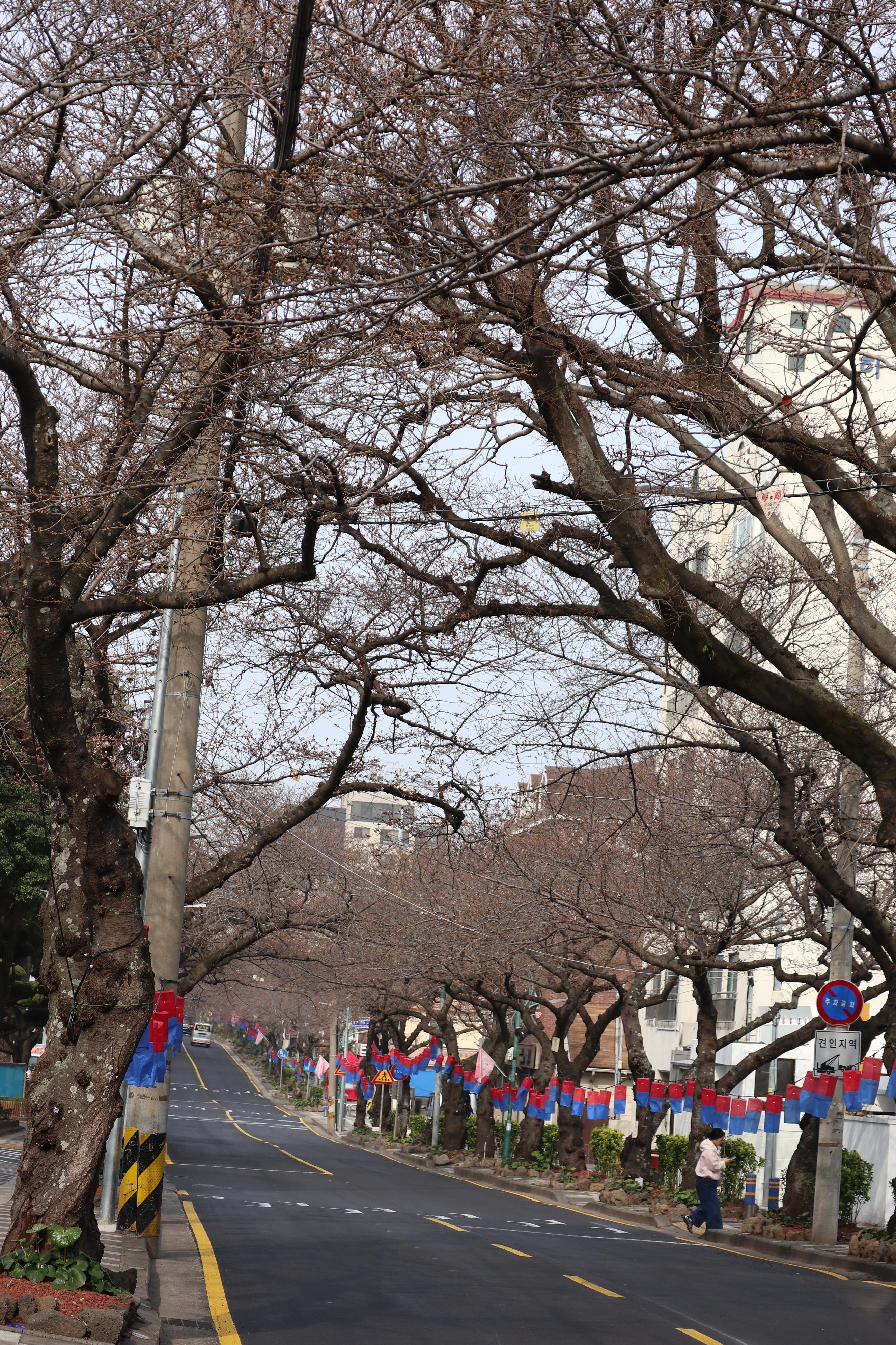 전농로 벚꽃은 제주 시내에서도 비교적 지대가 낮은 지역에 위치해 있어 개화 시기가 빠른 편입니다.